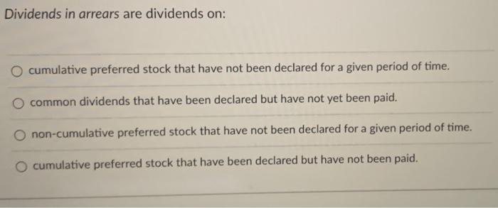 Solved Dividends In Arrears Are Dividends On Cumulative Chegg Com
